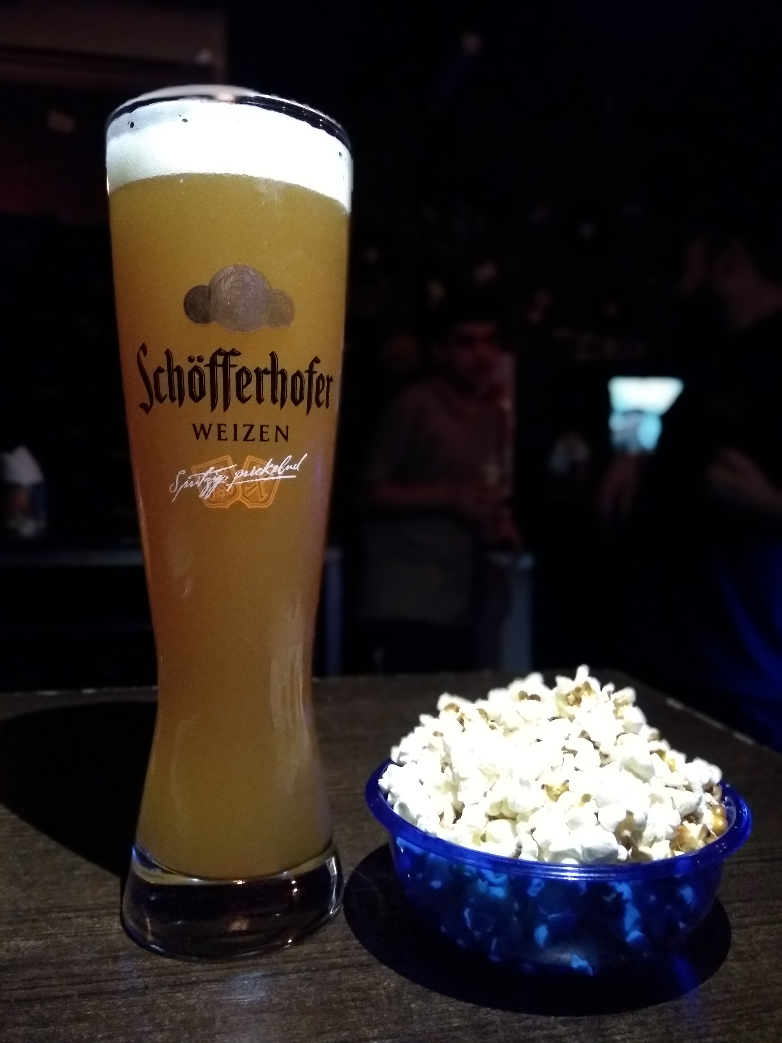 Nosotros arrancamos con una Mango Milkshake IPA de Okcidenta (amarilla pajiza, bien turbia, súper frutada en aroma y boca -predomina el mango pero aparecen otras frutas tropicales como el maracuyá que le da un toque más cítrico-, súper sedosa) y una Weizen de Schoferhoffer (amarilla pajiza, turbia, en aroma y boca se se sienten banana y manzana y algunas notas especiadas como de coriandro. Gran birra!). Las birras salen con pochoclo salado o maní, vos elegís!