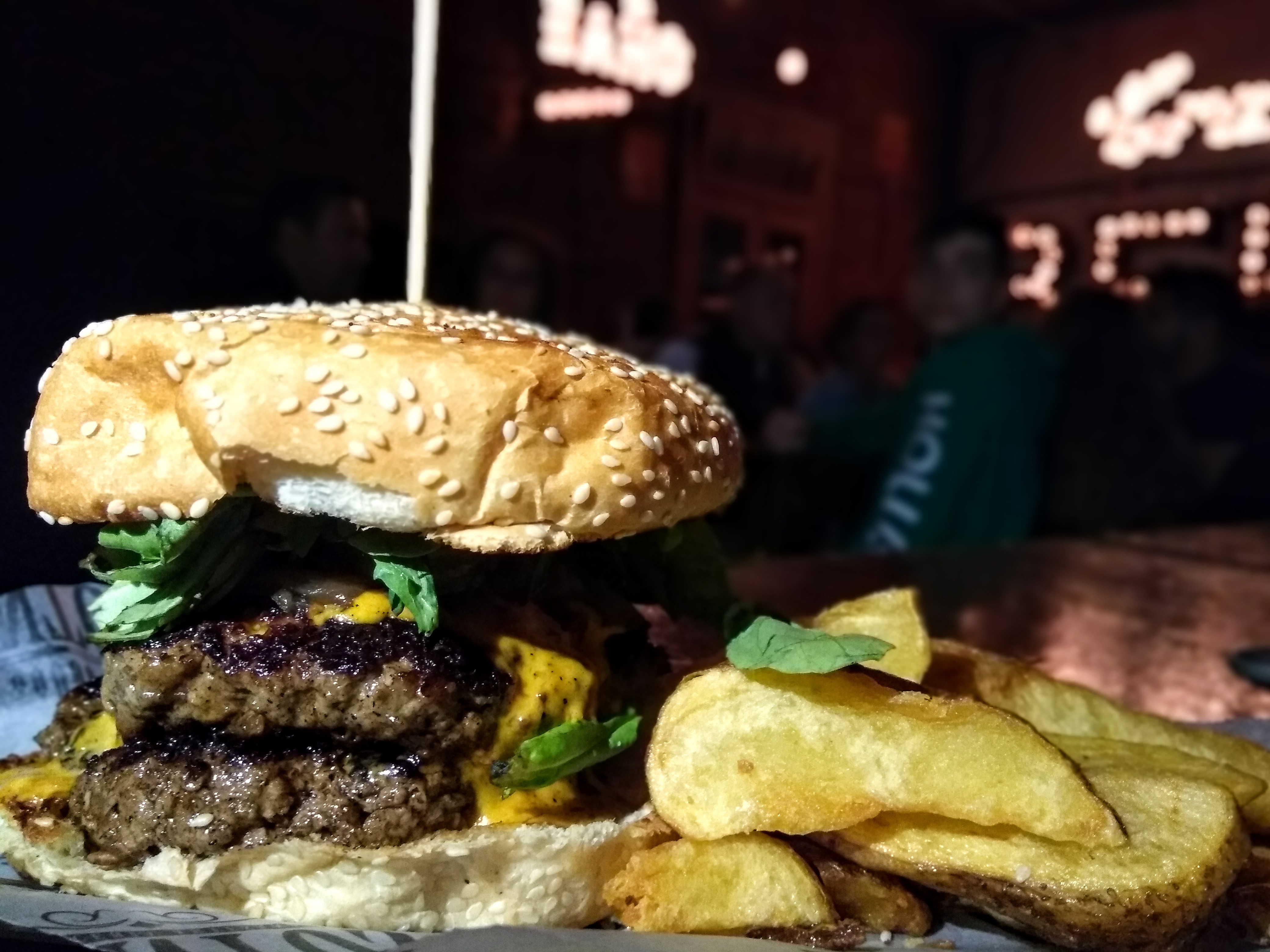 Seguimos con una Burger Doble Pentos (doble carne con cheddar, panceta, rúcula, cebolla caramelizada y pepinillos. Una bomba deliciosa! Súper sabrosa, con un blend de carne muy rico y gusto a parrilla. Los ingredientes se sienten todos, y van formando capas de sabores en tu boca. Nos gustó muchísimo!) y una Bondiola Pentos (bondiola desmechada, cebolla caramelizada, coleslaw y barbacoa. Tiene forma de burger pero la bondio está desmechada posta! Dulzona, suave, con el agregado del coleslaw que le da frescura, textura y sabor… Riquísima!). Las papas que acompañas vienen cortadas en cuña y son ricas! Tomamos una APA 4:20 de Bastion (ámbar, liviana y fácil de tomar, con algunas notas a frutos tropicales y un fin de boca algo amargo), y una Summer Wit de Salven la reina (amarillo pajizo, turbia, bien frutada, una birra suave y cero amarga para tomar mil!).