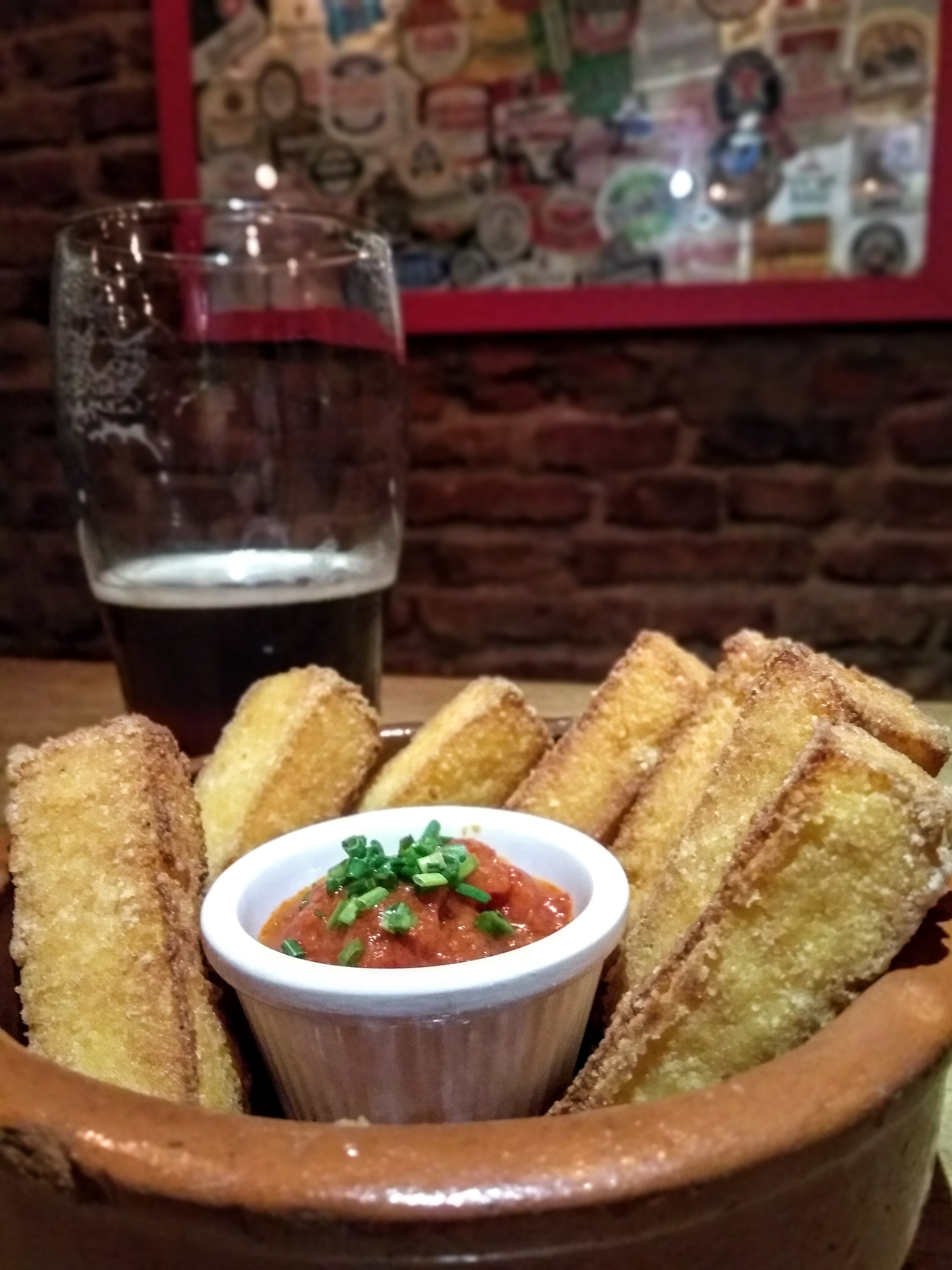 Para picar, no pudimos elegir, y entonces elegimos todo! Comimos los Bastones de polenta (súper originales, es la primer cervecería donde los vemos! Salen en una cazuela de barro acompañados con salsita de tomate y son deliciosos! Los amamos y ya nos declaramos fanáticos!), Milanesitas de cerdo y Bastones de pollo (súper crocantes y sequitos, la fritura es realmente impecable, la carne en ambos casos se nota que es fresca y de calidad. Un lujo!). Te recomendamos que pruebes todas las salsas caseras que tienen en Paralelos (sí, otra vez no pudimos elegir y las probamos todas!)… Nuestras preferidas: mayo con rúcula y mayo picante. Pero lo dejamos a tu criterio! Tomamos una Pacific Ale de Dos Dingos (dorada intensa, con notas a frutos tropicales que te estallan en la cara y se sienten en aroma y boca, y sobre el final un amargor interesante que te va a acompañar un ratito) y una Red Haze de Crafter (roja intensa, con aroma a caramelo tostado, en boca aparecen notas a avellanas y ciruelas. Muy rica birra!).