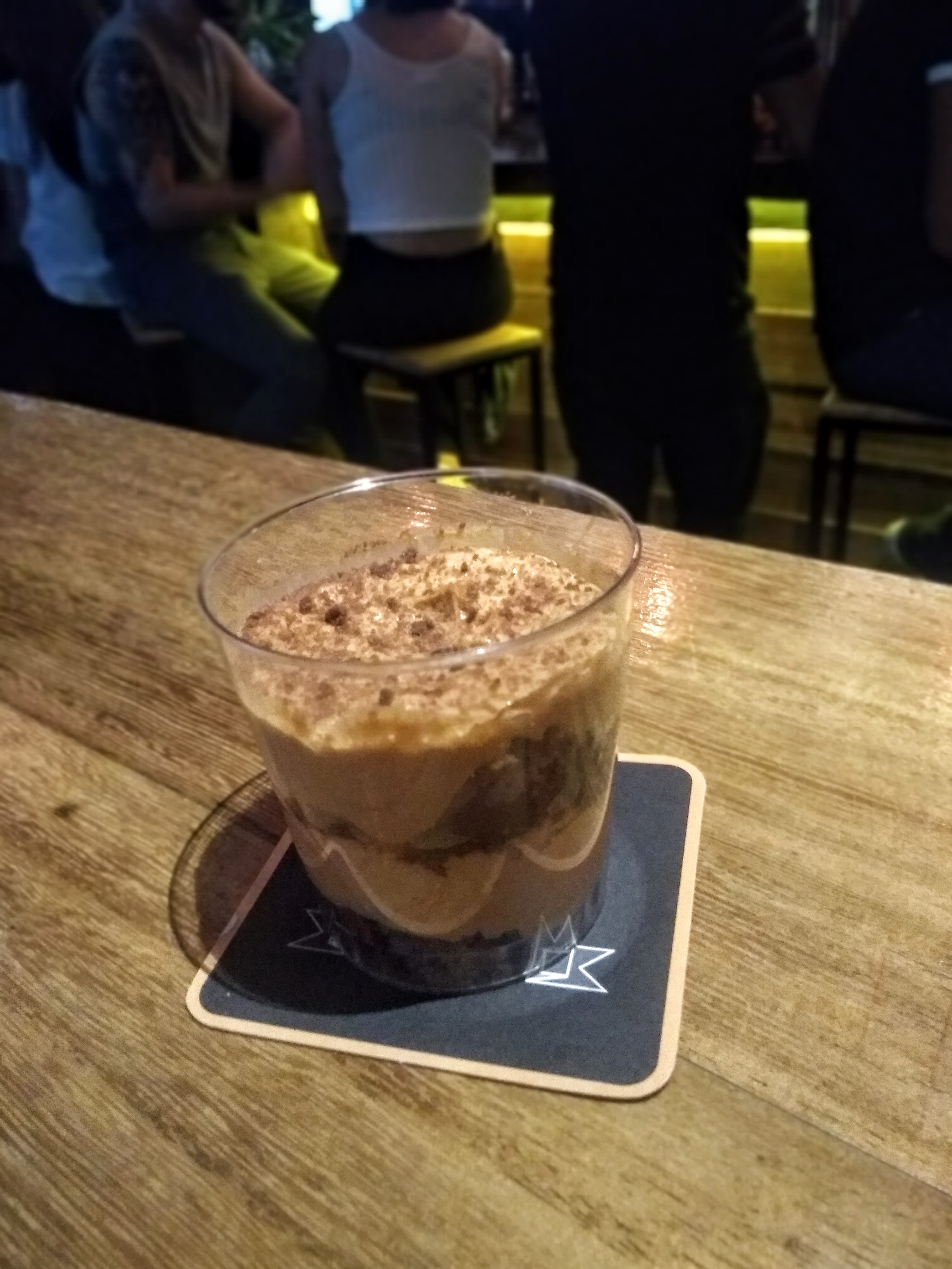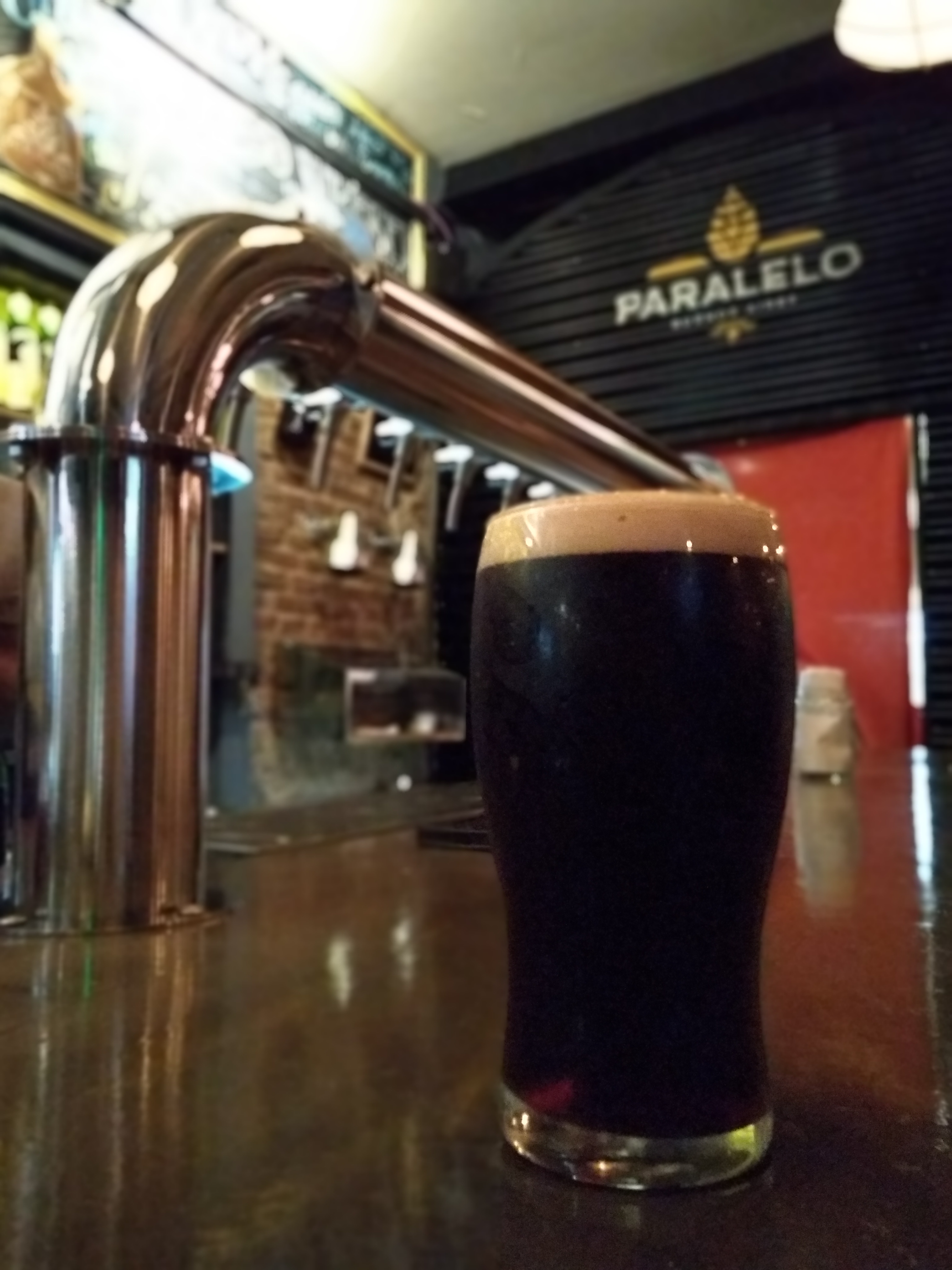 Para cerrar la noche, probamos la Chocotorta ( sale en un vaso y es una bomba! Tiene muchísima crema, así que compartila si no querés quedarla en Paralelo!) y la acompañamos de una Porter de Monte Hoppiness (negra, de espuma amarronada, con notas a café tostado, frutos secos y de carozo, nos pareció quizás demasiado liviana en cuerpo) y una Desafío Dark Session IPA de Güira (negra, con aroma a frutos tropicales que se repiten en boca acompañados de algunas notas tostadas. Liviana en cuerpo y fácil de tomar, nos encantó!).