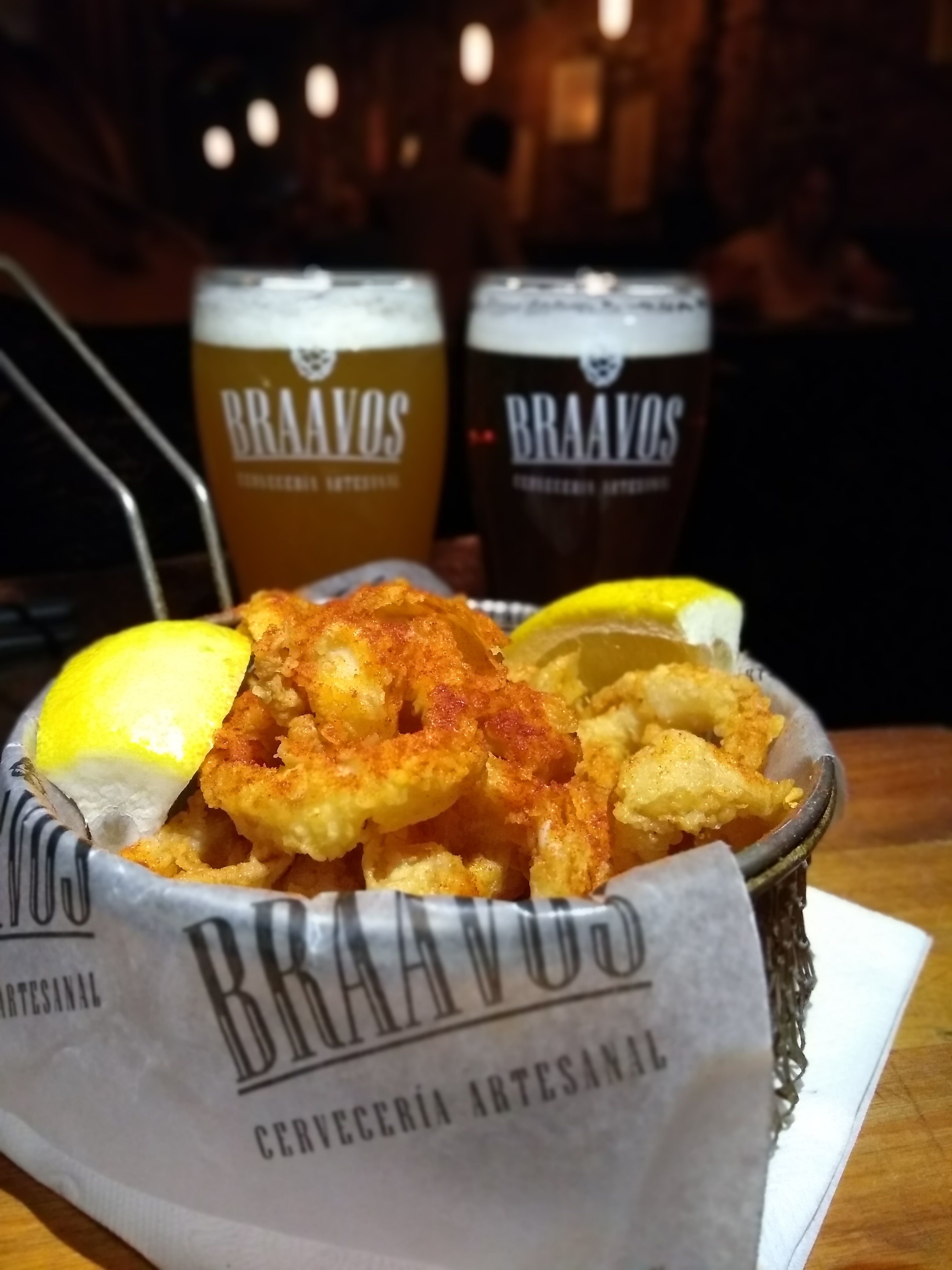 Nosotros arrancamos por unas Rabas, que salieron presentadas hermosas y espolvoreadas con pimentón. Decir que estaban ricas es poco! Y por eso te queremos recomendar que te animes a probarlas, porque en pocos bares cerveceros se encuentra esta calidad de comida! Las acompañamos de una American Wheat de La Paz (amarillo pajizo, bien turbia, con las notas típicas de una wheat pero a nuestro paladar, le faltó un poco más de «american») y una Durazno Soft de Denver (dorada intensa, en aroma el durazno aparece suave y en boca toma protagonismo. Rica birra y bien lograda, suave y fácil de tomar!).