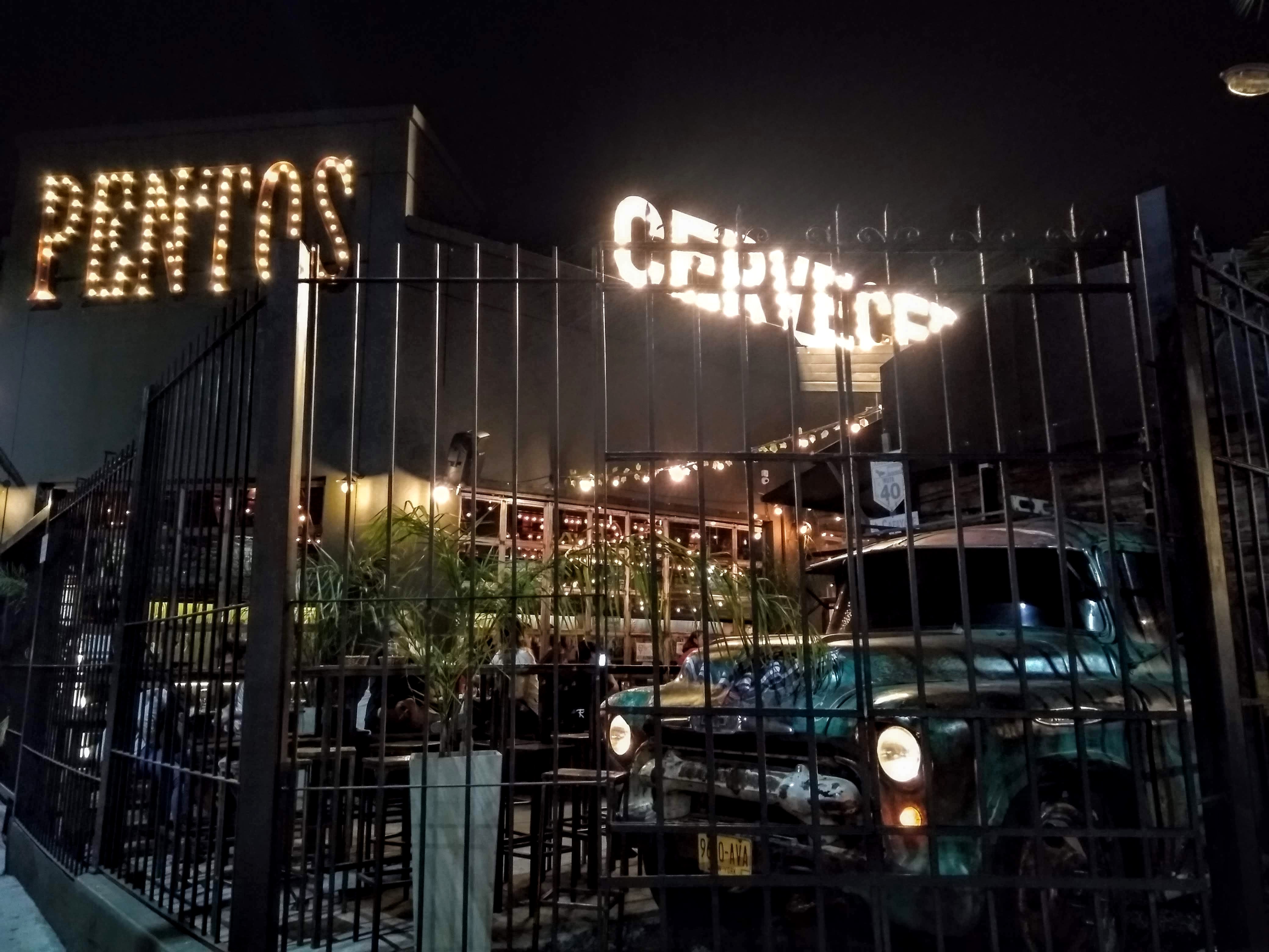 Pentos Ituzaingó está ubicado en una esquina, el local es súper grande y tiene diferentes ambientes para que disfrutes: afuera, un patio cervecero con muchos murales de colores, un camioncito que oficia de barra de tragos, y el cartel luminoso que anuncia “Craft Beer” y ya es una marca registrada de Pentos; adentro, luces cálidas bien bajas para generar un ambiente más íntimo, y mesas en planta baja y un entrepiso con un cartel que dice «Viva la birra» y se roba todas las miradas.