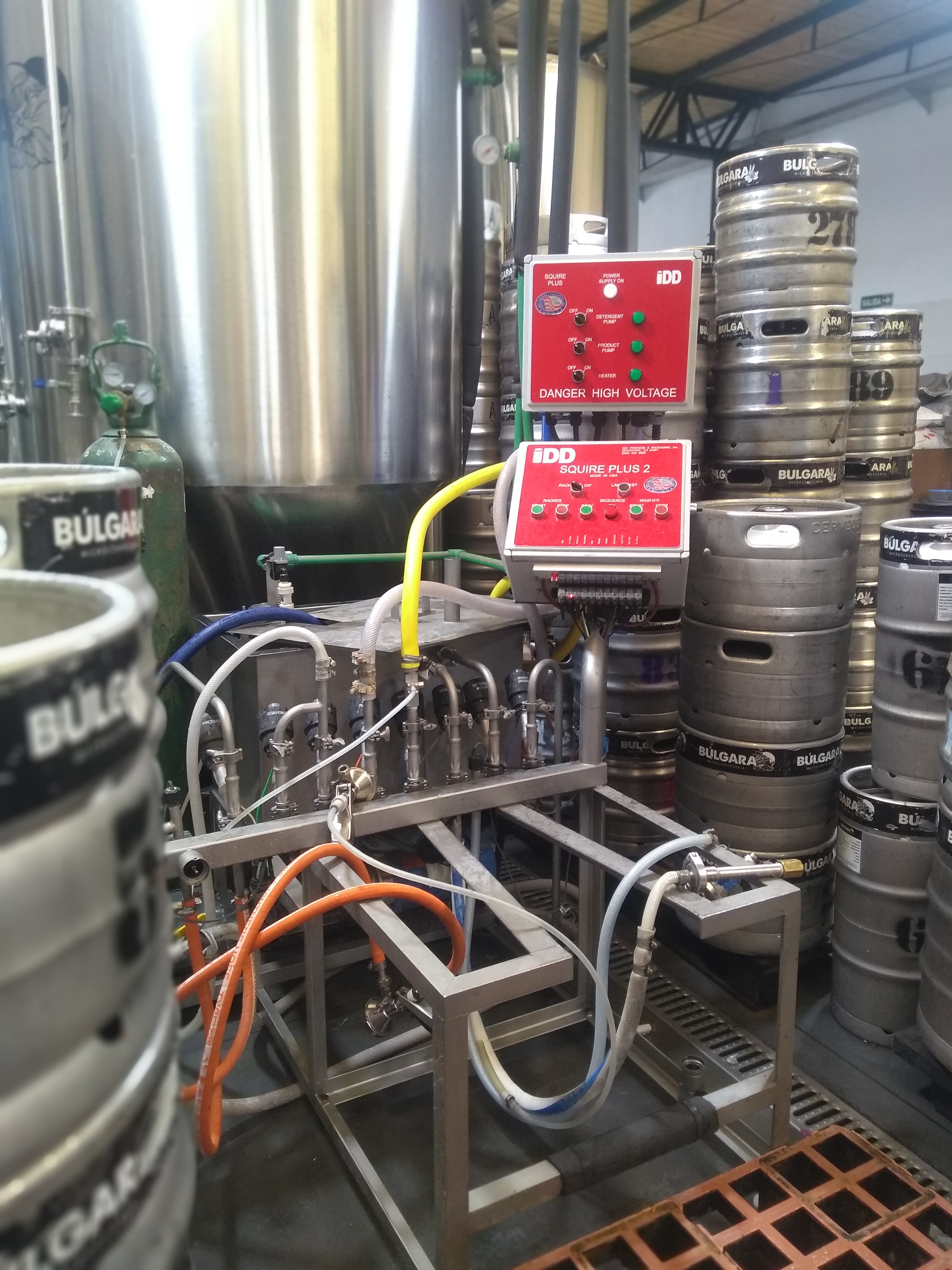 La fábrica en sí es un lujo que vimos pocas veces en nuestras visitas: los equipos son todos de acero inoxidable y de última tecnología, pero no sólo eso nos llamó la atención. Para empezar, trabajan con vapor en lugar de fuego para llegar a las temperaturas necesarias en los procesos de cocción de la birra, lo que les permite ahorrar energía, pero sobre todo controlar el proceso a la perfección. Llenan los barriles con máquina y los presurizan antes, por lo que el riesgo de oxidación de la cerveza es prácticamente nulo.