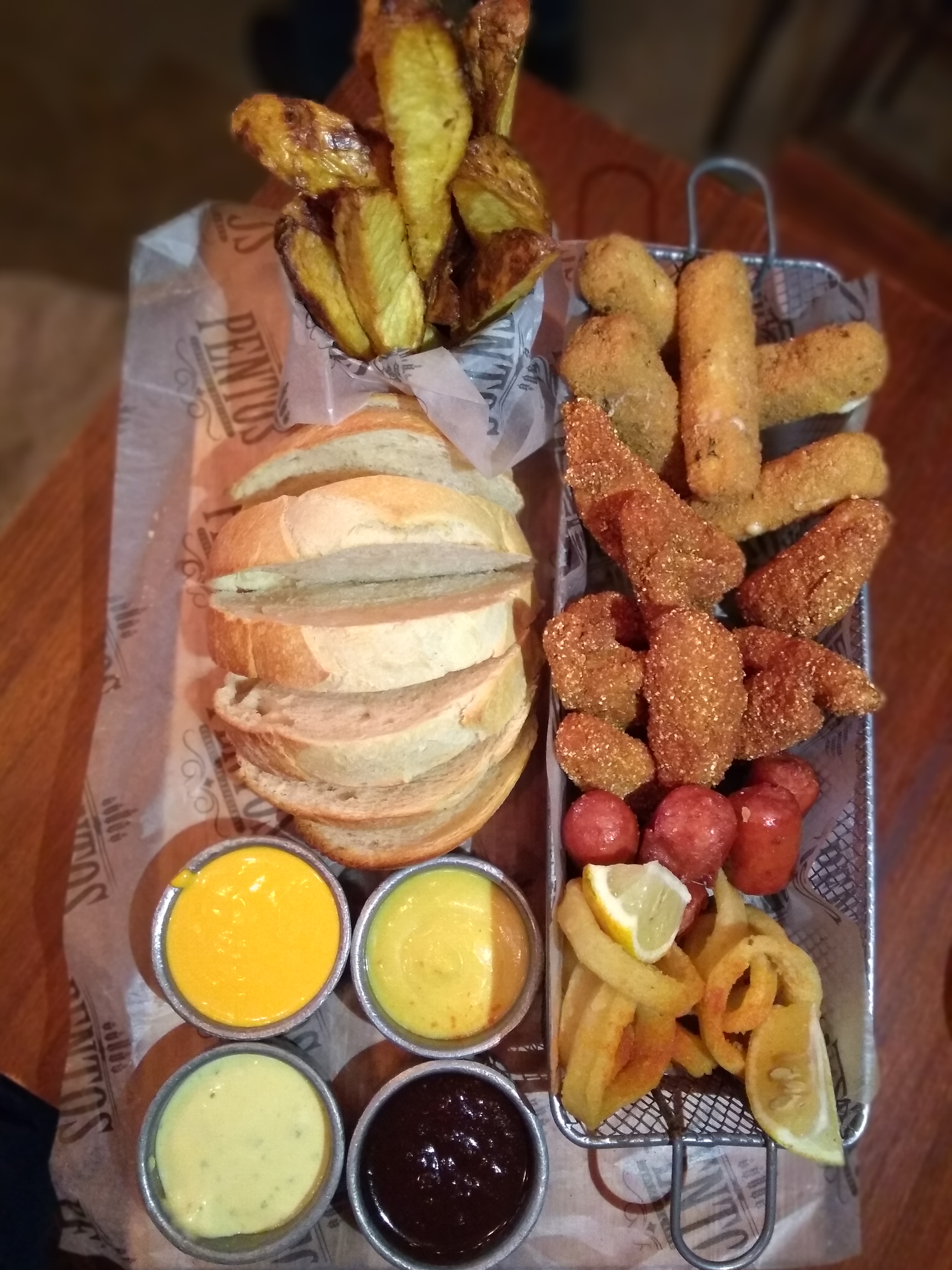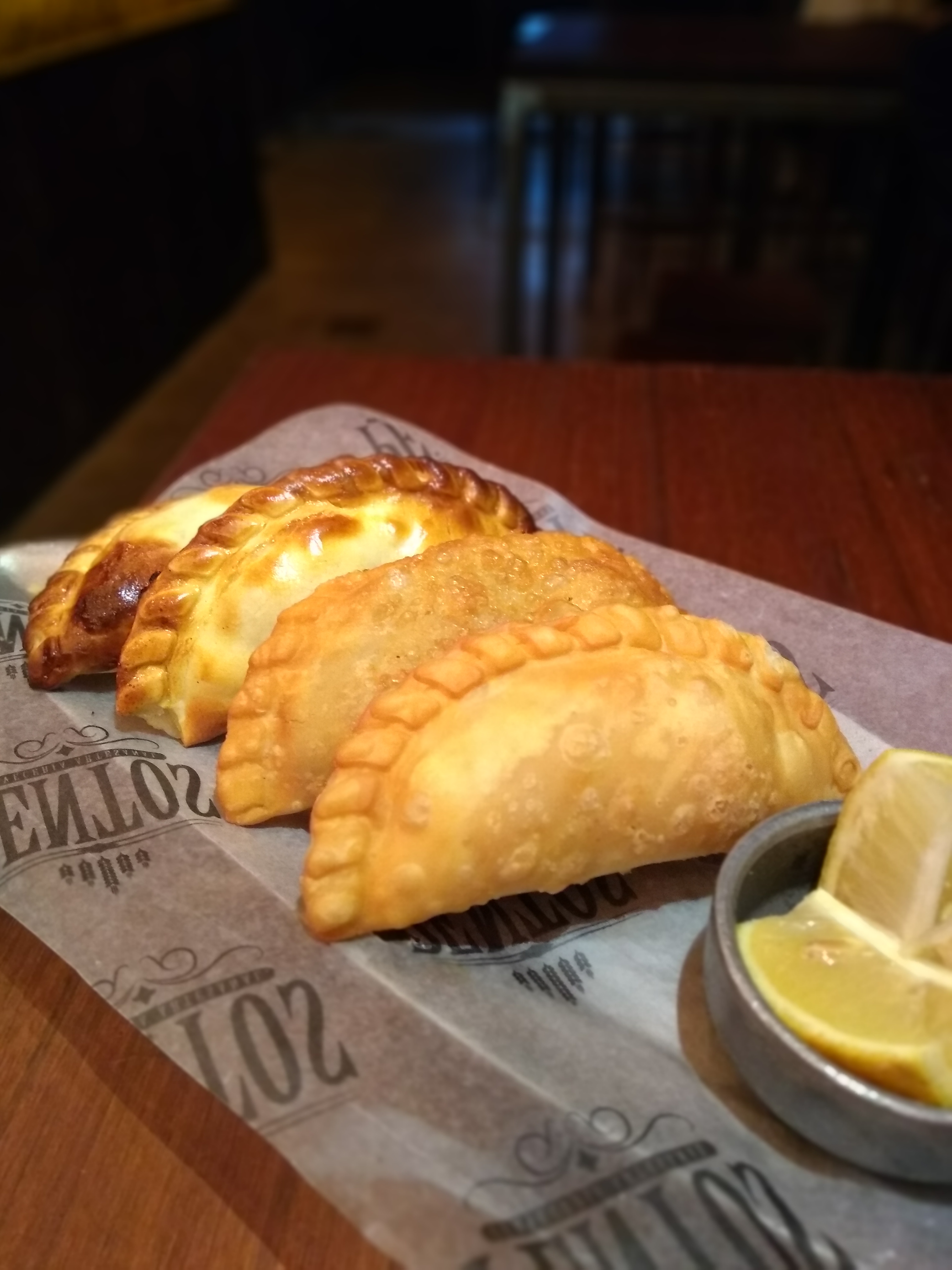 Empezamos la noche con una Tabla caliente, que sale con papas al horno, rabas, salchichas, pollo frito, muzzarellas y pan de campo. Además, viene con dips de cheddar, alioli y mostaza y miel. Algo que nos sorprendió de todos los Pentos es que la fritura es absolutamente impecable, algo muy difícil de lograr! Todos los ingredientes de la tabla estaban buenísimos, y nos sorprendió que una Tabla de fritos nos guste tanto! (Se imaginarán que a esta altura hemos probado muchísimas!). Además, pedimos Empanadas de Jamón y Queso, y de carne. Salen fritas o al horno, así que pedimos surtidito como para probar todas las opciones. Con mucho relleno, sabrosas e ideales si salís con bajo presupuesto. Nos pareció una gran opción! Acompañamos esta «picadita» con una Oktoberfest de Peñón del águila (rojiza, con buen soporte de maltas caramelo que balancea hacia notas herbales/terrosas al final), una Refreshing Ale de Dos Dingos (dorada, algo turbia, las notas cítricas se sienten en aroma y boca, en esta birra liviana, fresca y fácil de tomar), una La Beriso de Rabieta (dorada, con suaves notas a lima en aroma que en boca aparecen bien marcadas. Una birra fresca, cítrica, con pequeñas burbujas que cosquillean en tu boca, de mucha tomabilidad) y una NEIPA de Goyeneche (dorada, de buena formación de espuma blanca persistente, que genera lacing, aroma a frutas tropicales y cítricas como el ananá y maracuyá, que en boca dan lugar a notas bien cítricas como el pomelo. De amargor medio y mucha tomabilidad).