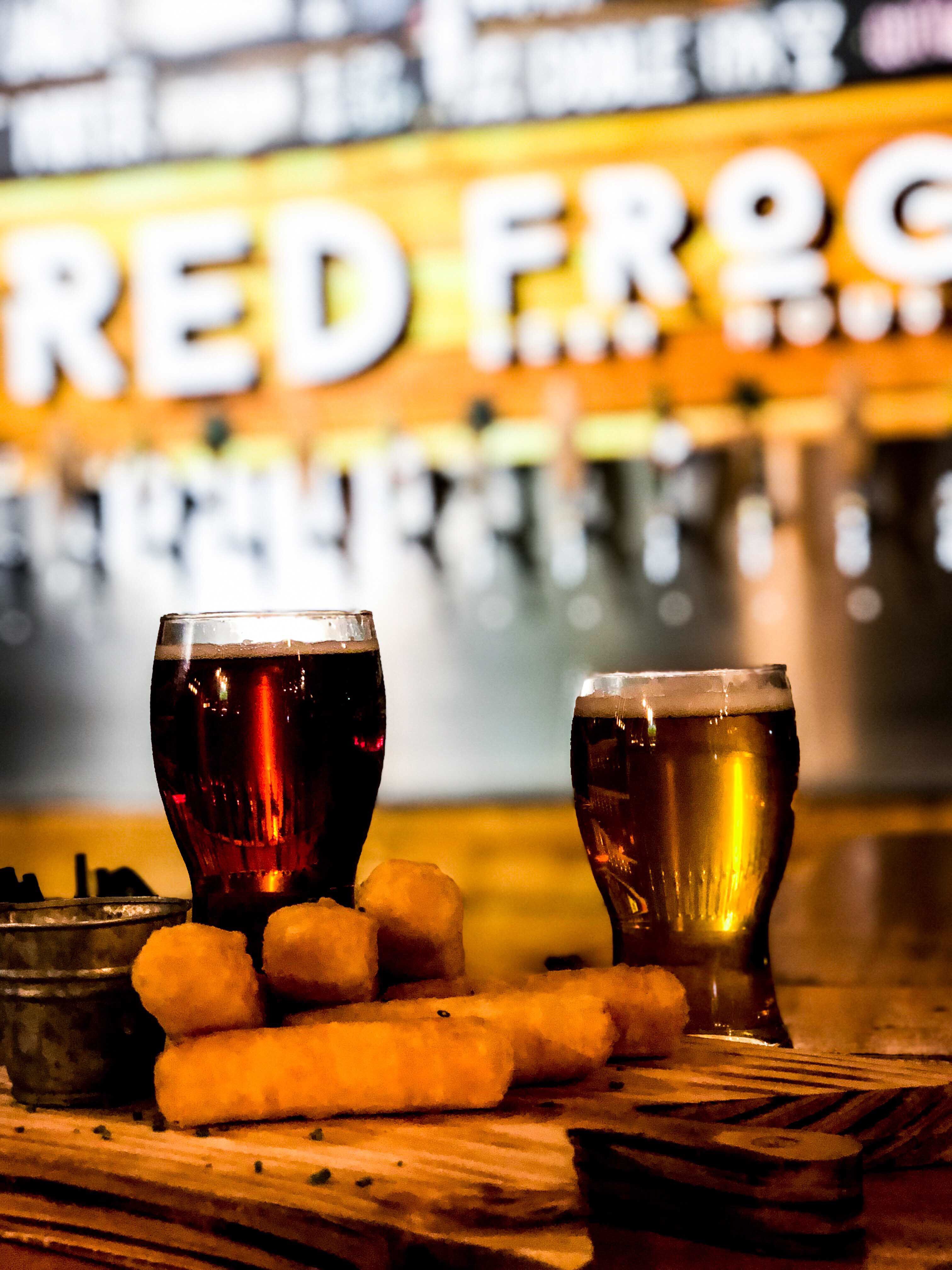 En esta sesión de maridaje salimos de Capital Federal. Con Pachu (mi mujer según Elvis Presley y la ley de Las Vegas) llegamos a Red Frog Beer House en Villa Ballester. Nos esperaban Julián y Nahuel que, con la mejor onda, nos recibían con las puertas abiertas de una cervecería que cuida hasta el último detalle. Cuando un negocio es atendido por sus propios dueños se nota la gran prolijidad de todo. La cartelera de cervezas, el menú, la decoración, el ambiente y las buenas vibras maridaban todo perfectamente.