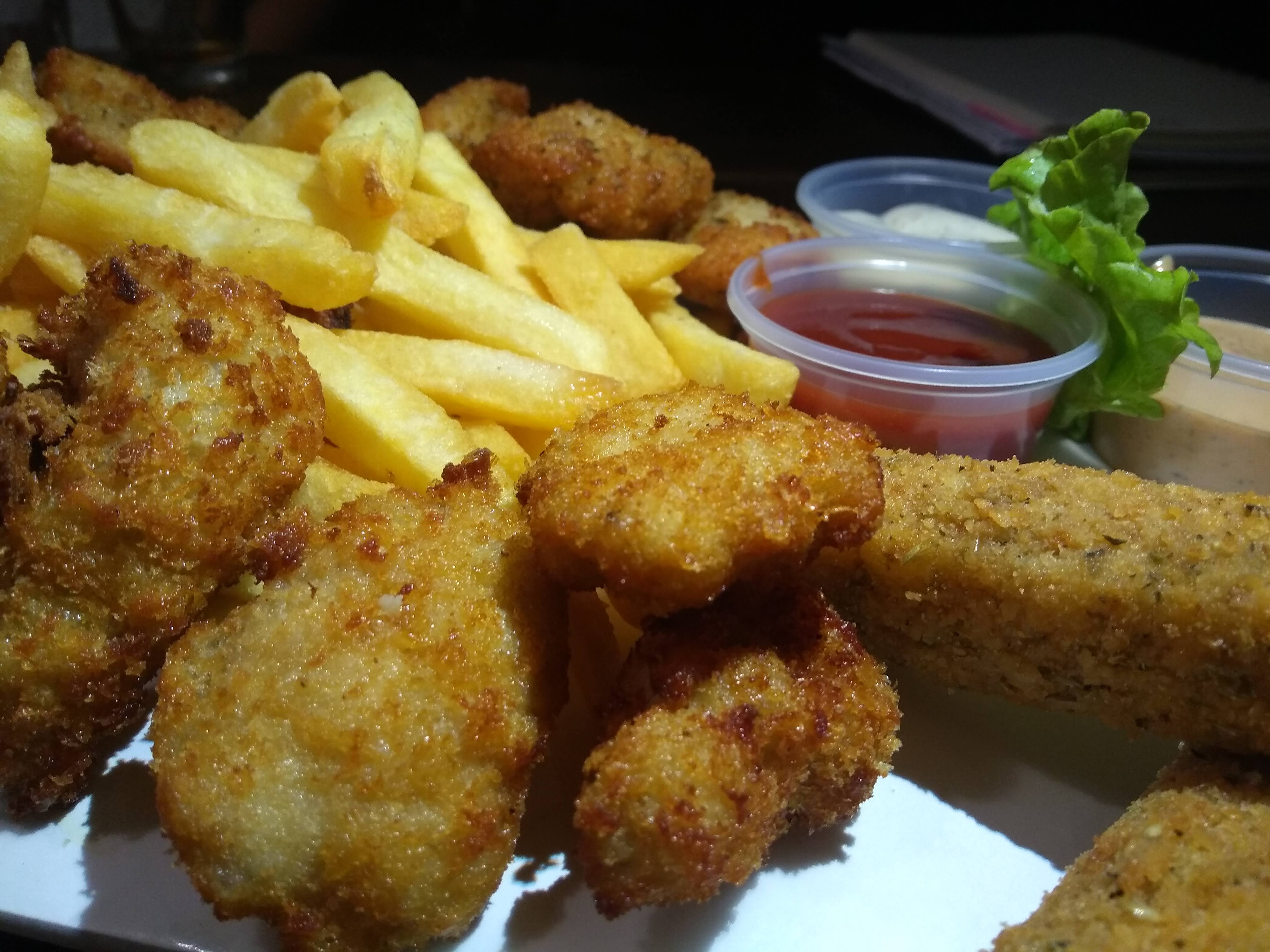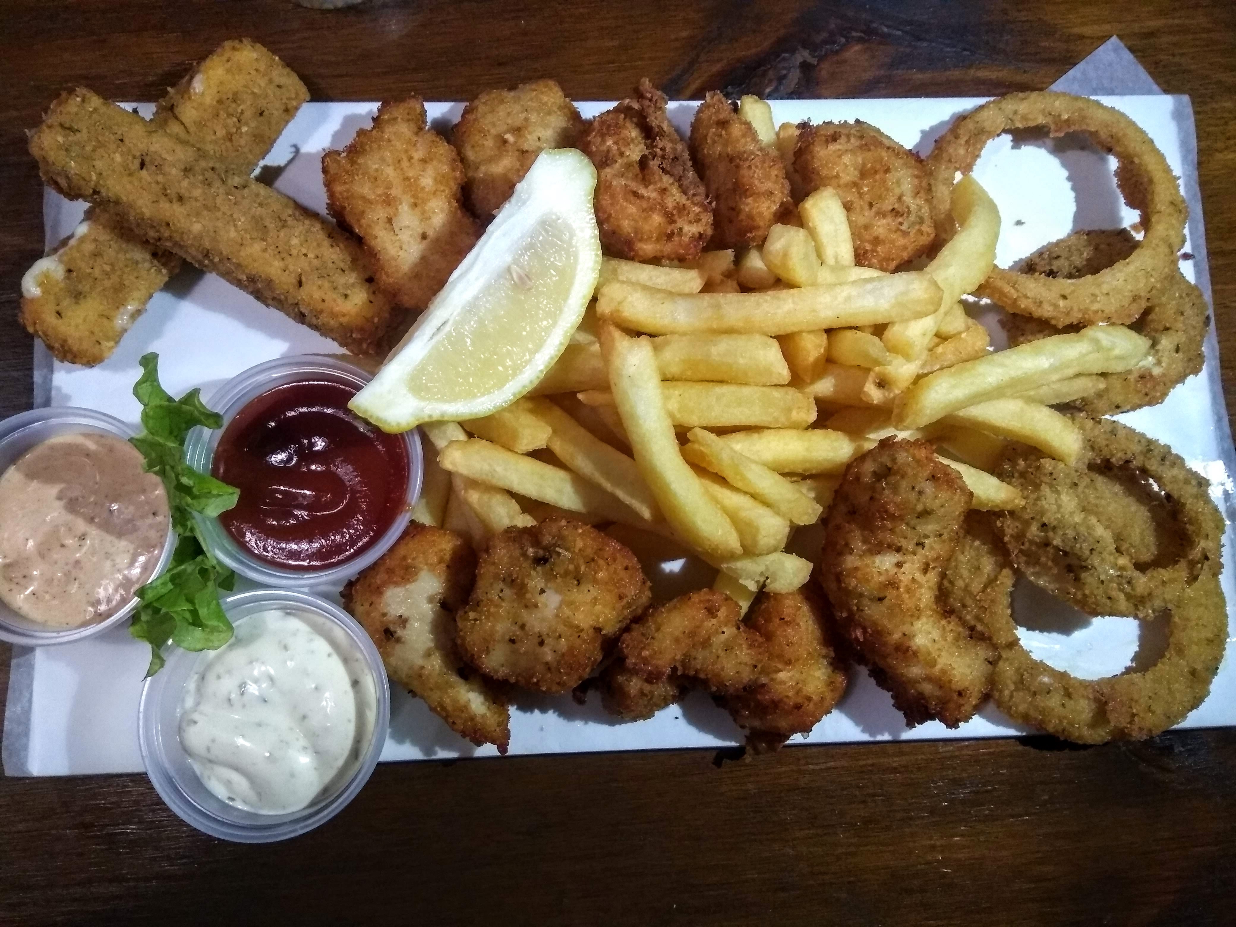 Arrancamos por una Cream Ale de Darwin (dorada, de espuma cremosa, maltosa en boca, con notas a grano bien marcadas, de amargor medio. Para tomar mil pintas!) y una Dorada Pampeana de Nuevo Origen (dorada con destellos anaranjados, turbia, en aroma y boca el grano aparece en primer plano junto a un leve amargor herbal, de final seco). Después, pedimos una Picada caliente, que sale con muzzarellas, pescado frito, pollo frito, aros de cebolla y papas. La fritura estaba muy bien y la comida sabrosa, sólo nos gustaría que las papas sean caseras como todo lo demás! Acompañamos con una APA de Mur (dorada, cítrica en aroma y boca, de amargor medio. Al calentarse, aparecen algunas notas a frutas tropicales. Una birra liviana y de mucha tomabilidad) y una Red IPA de Bierhaus (rojiza, con notas a caramelo tostado en aroma y boca, acompañadas por algunas notas suaves a frutos tropicales).