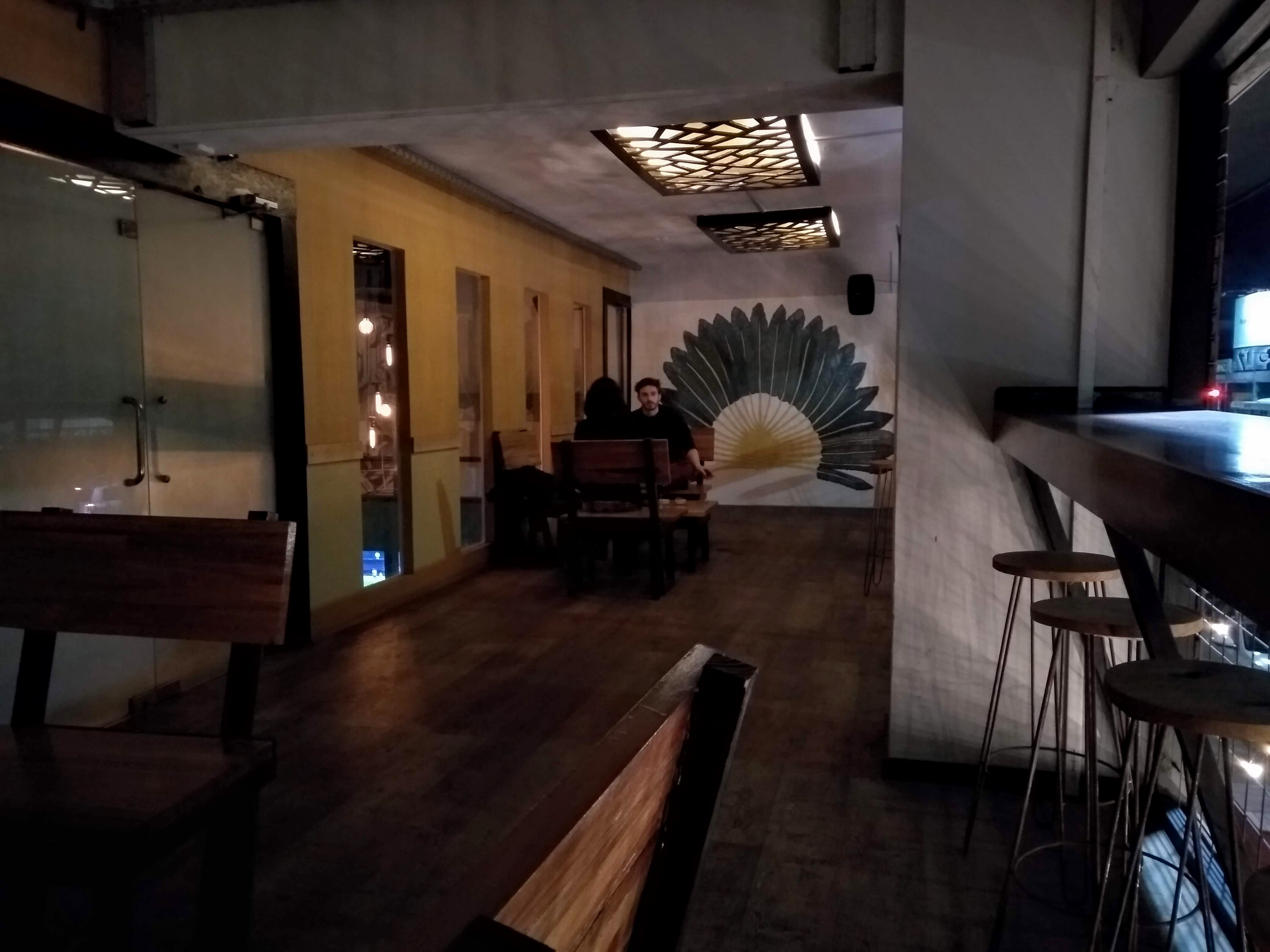 El local es enorme, con 2 pisos súper amplios y murales de flores y árboles en las paredes, luces cálidas, mucha madera y música tranqui. En el 2do piso hay además una terraza hermosa!