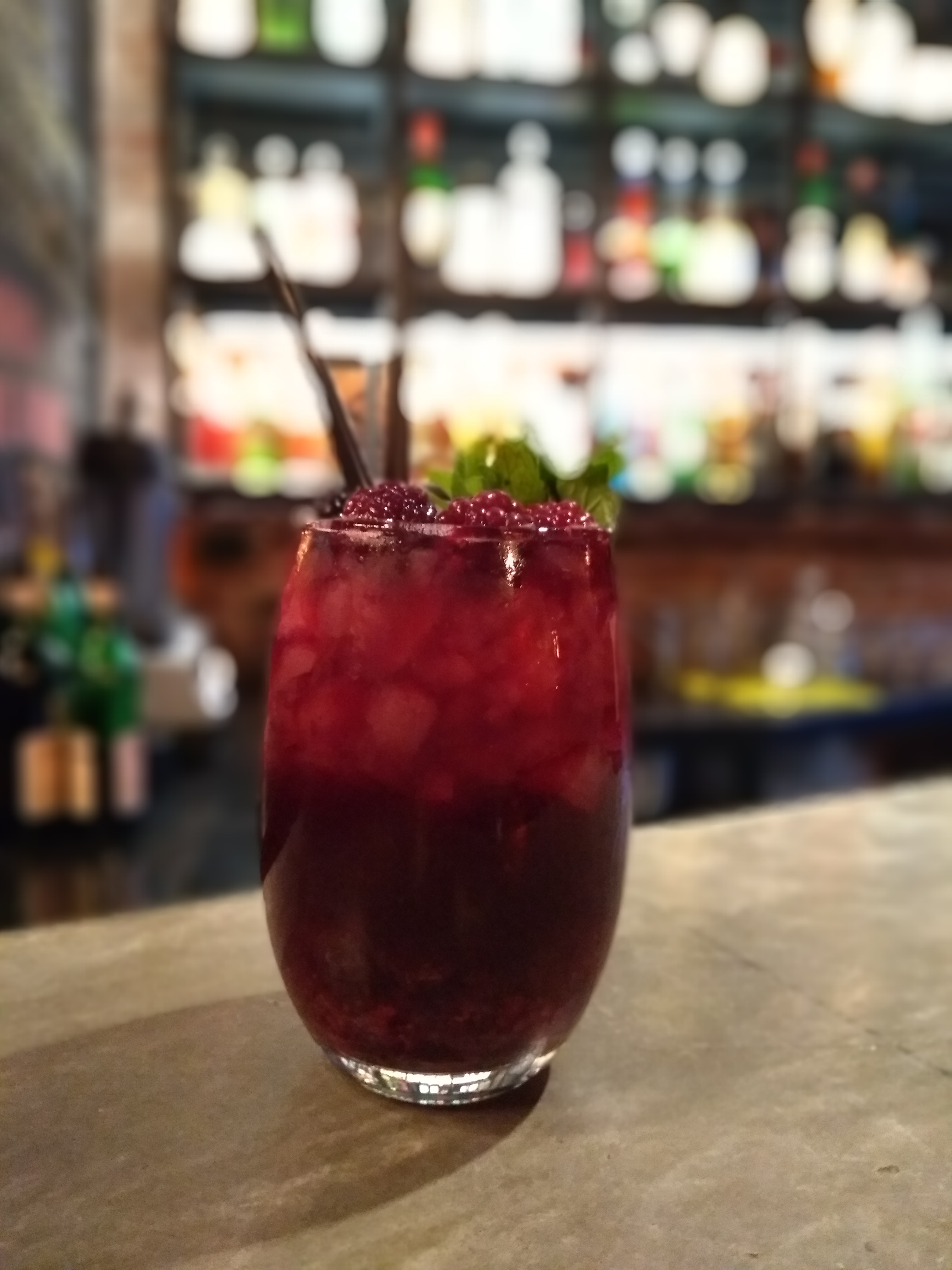 Cerramos la noche con una Pilsen de Denver (dorada, maltosa, ligera y fácil de tomar, de final seco) y un trago: Frutos Amados.