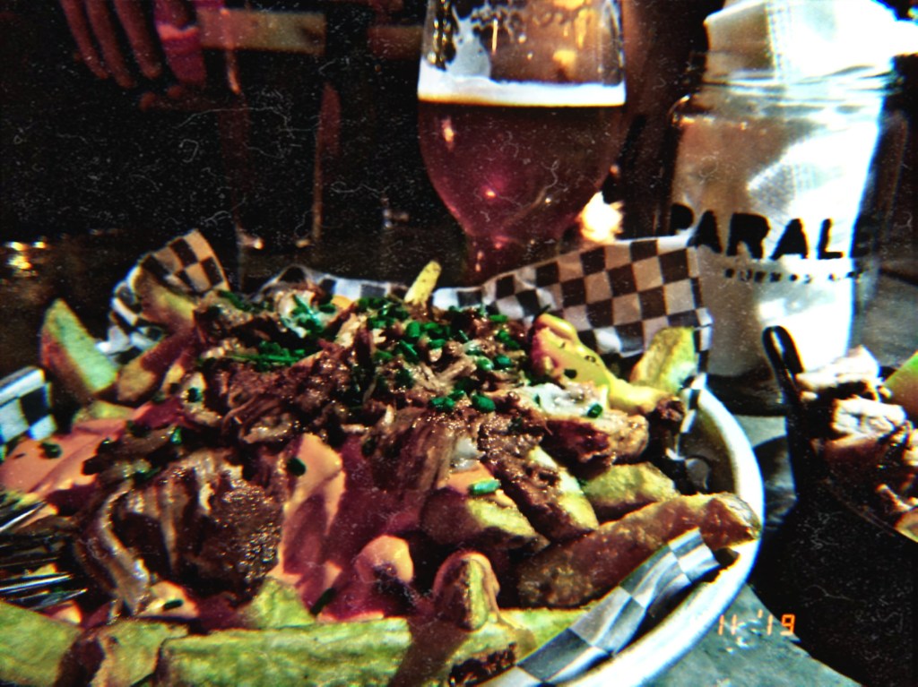 En la panza, todavía quedaba un ambiente vacío, y por esto optamos por seguir por mis tan amadas papas Paralelo, con lluvia de bondiola braseada, cheddar y verdeo, y unas mollejitas con chips de mandioca que estaban en su punto exacto con una crocantés externa y una ternura por dentro. Para esto, el remate es la foto que sigue: