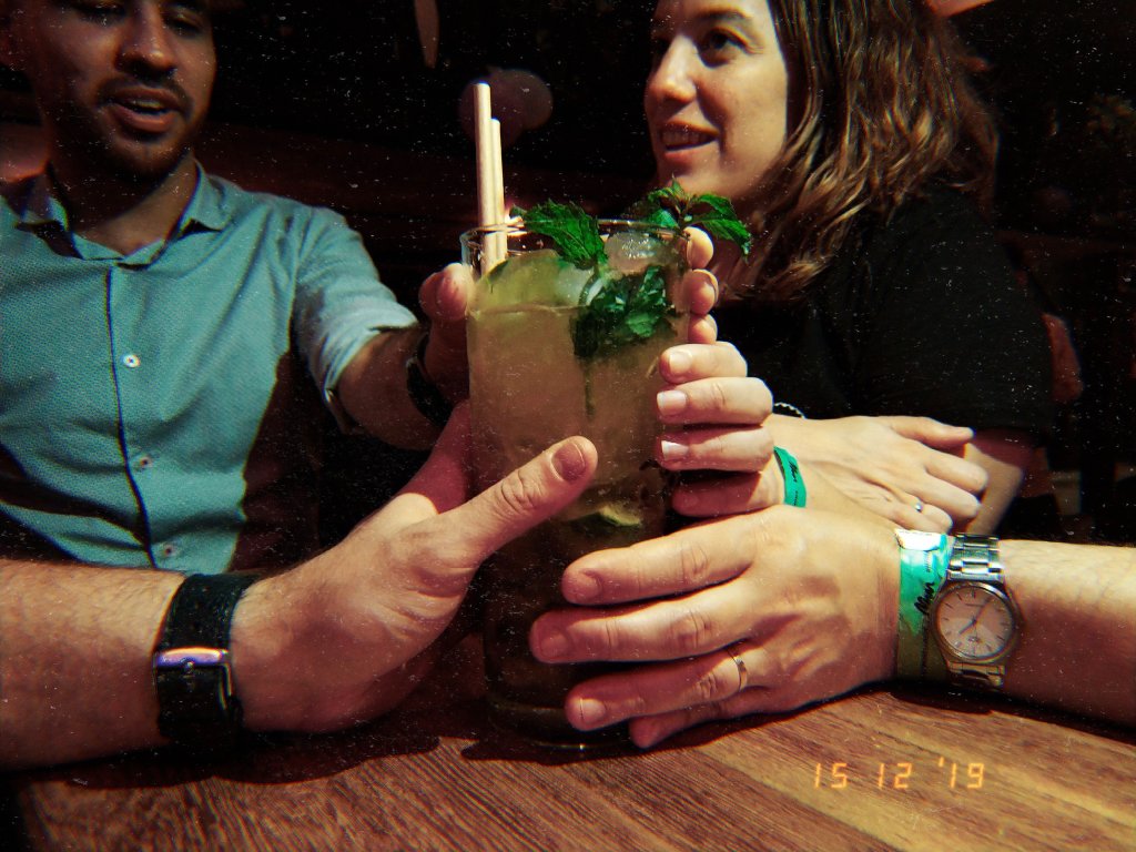 Poco antes de que todo se descontrolara, de que las luces se atenuaran y de que la gran sorpresa apareciera, llegó a la mesa lo que sería el postre para compartir –porque excusas siempre sobran a la hora de disfrutar-, una Caipi JUMBO de maracuyá y un vermú tirado La Fuerza.