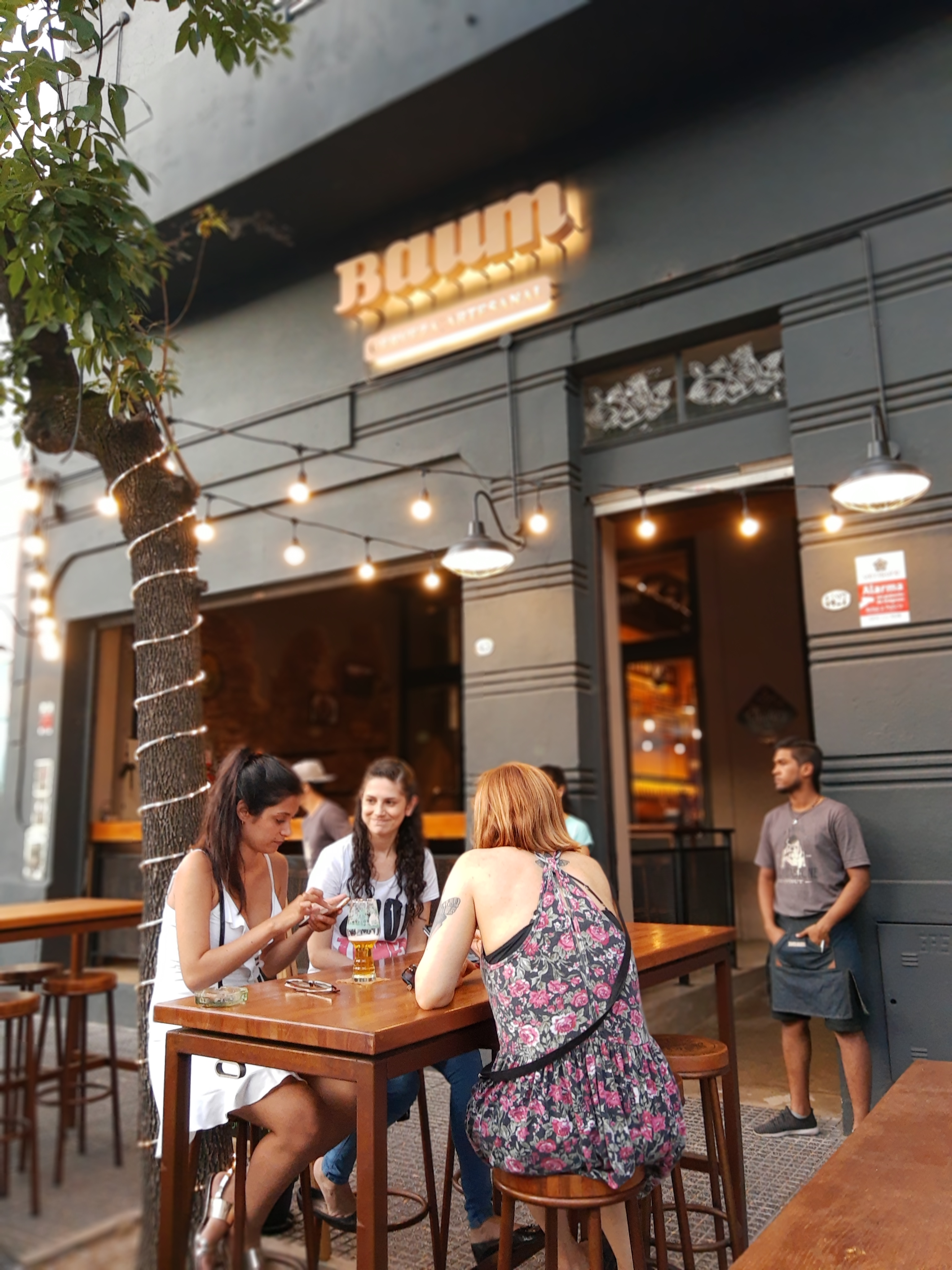 A fines de 2018, abrió sus puertas Baum Palermo Soho, con una identidad propia que te va a sorprender aún antes de que pongas un pie en el local. Uno de sus dueños, José Carlos, es mexicano, y conoció en Argentina a su socio y compañero de vida, Walter. Juntos, buscaron darle una identidad que cohesione lo argentino de Baum y Walter, con lo mexicano de José Carlos. Y vaya si lo lograron! Ya desde la vereda de enfrente vas a ver una Catrina enorme, colorida e iluminada, en la fachada de este Baum, que lo distingue de todos los demás. Pero la cosa no termina ahí: en sus paredes vas a encontrar alebrijes iluminados, pequeños animalitos coloridos mezcla de realidad y fantasía (entre los cuales está Osvaldo, el perrito de José Carlos y Walter), un mural con una Catrina cervecera en el primer piso que no vas a querer perderte, porque te vas a sacar una GRAN foto con ella! Sumado a todos estos condimentos mexicanos; están la madera, el metal, y las luces cálidas que caracterizan a Baum. Todo perfectamente balanceado, en un ambiente que te va a hacer sentir bienvenido desde el minuto uno, como nos pasó a nosotros.