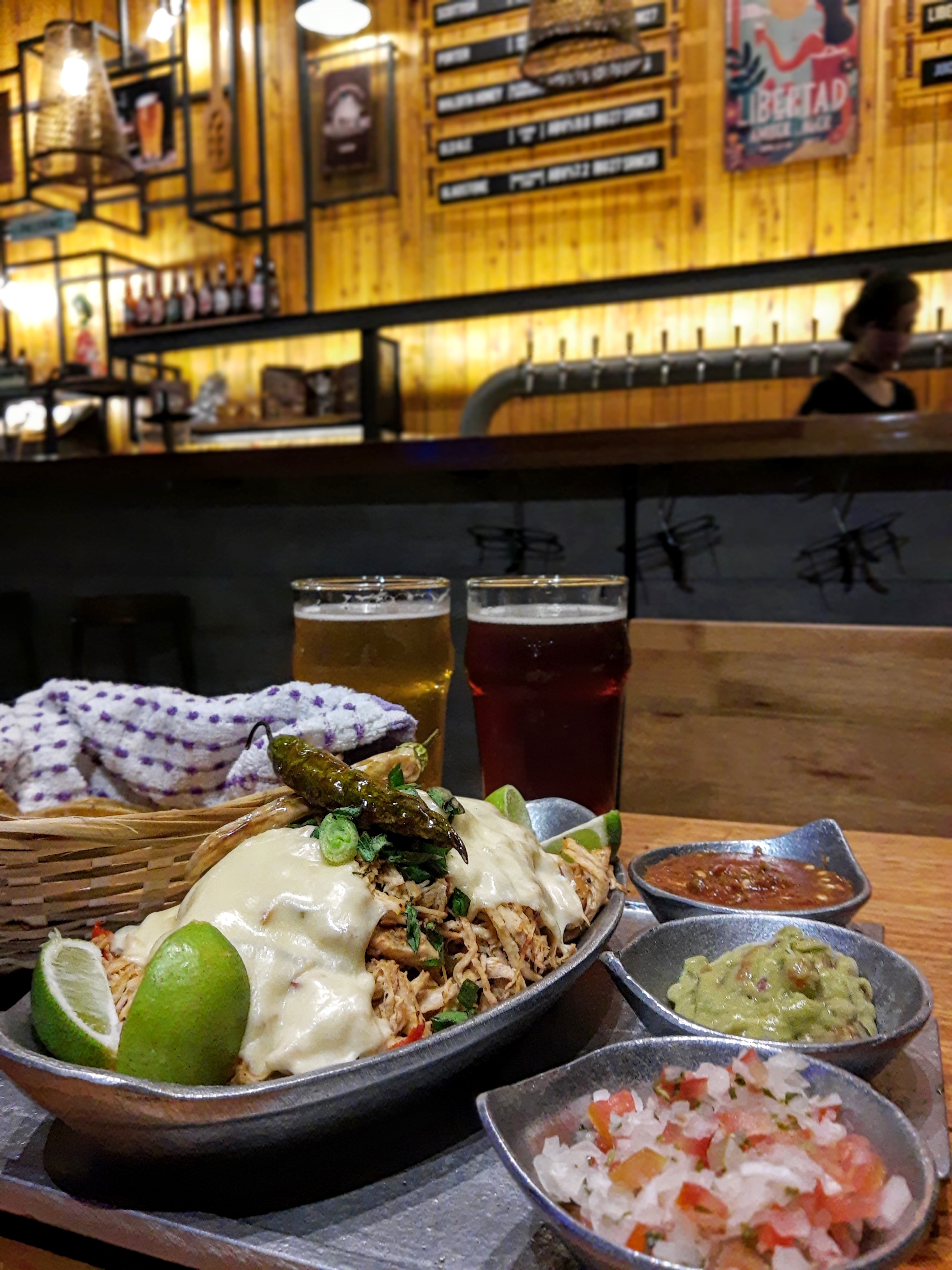 En el entretiempo, nos pedimos una Libertad Amber Lager, una cerveza de estación edición limitada. Y después, seguimos por 2 clásicas: Blonde y Scottish. A la hora de los platos principales, pedimos un Órale Burrito, a base de bondiola salteada, frijoles y queso mozzarella, con dip de cebolla y cilantro, crema ácida y salsa picante; y unos Pinches Tacos de cerdo, que vienen con tortillas auténticamente mexicanas, y una fuente con la carne salteada con vegetales y queso para rellenarlas, junto a dip de pico de gallo, guacamole y salsa picante. Ambas opciones nos encantaron, y son súper abundantes y dan para que compartan de a 2! Nosotros aprovechamos que teníamos que probar varias cosas para la nota (qué sacrificio!) y nos llevamos a casa lo que sobró, por lo que fuimos felices al día siguiente!