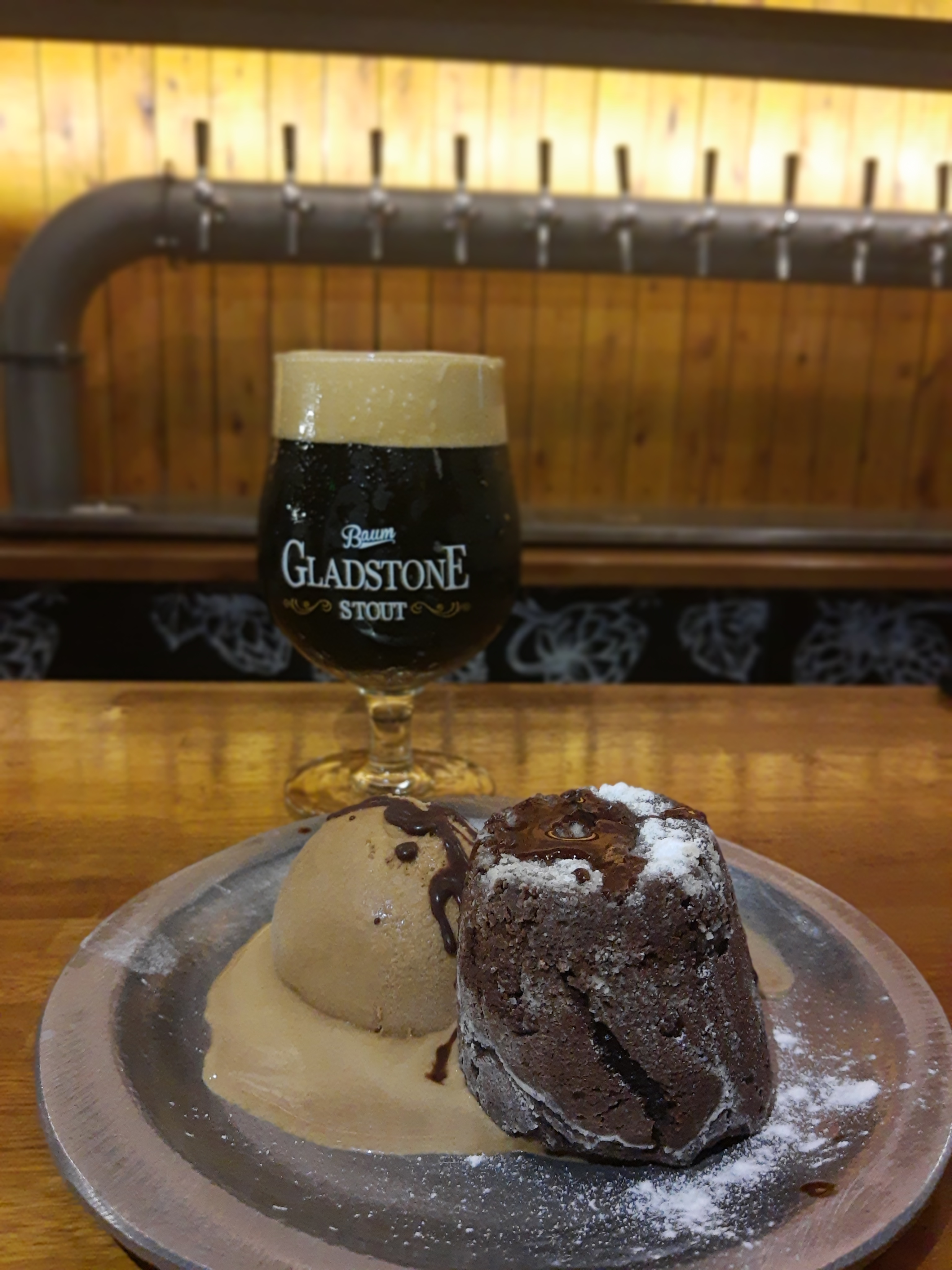 Cerramos la noche con dos de nuestras birras preferidas de Baum, las que nos hicieron conocerlos: una Fuck IPA y una Gladstone Stout. Y como siempre gordos, nunca ingordos, a la pregunta por si queríamos postre, respondimos que sí (a pesas de estar moribundos de tanto comer!). Y así fue como un hermoso Volcán de chocolate con helado de dulce de leche llegó a nuestra mesa para despedirnos pipones y con la cuota dulce que siempre necesitamos!