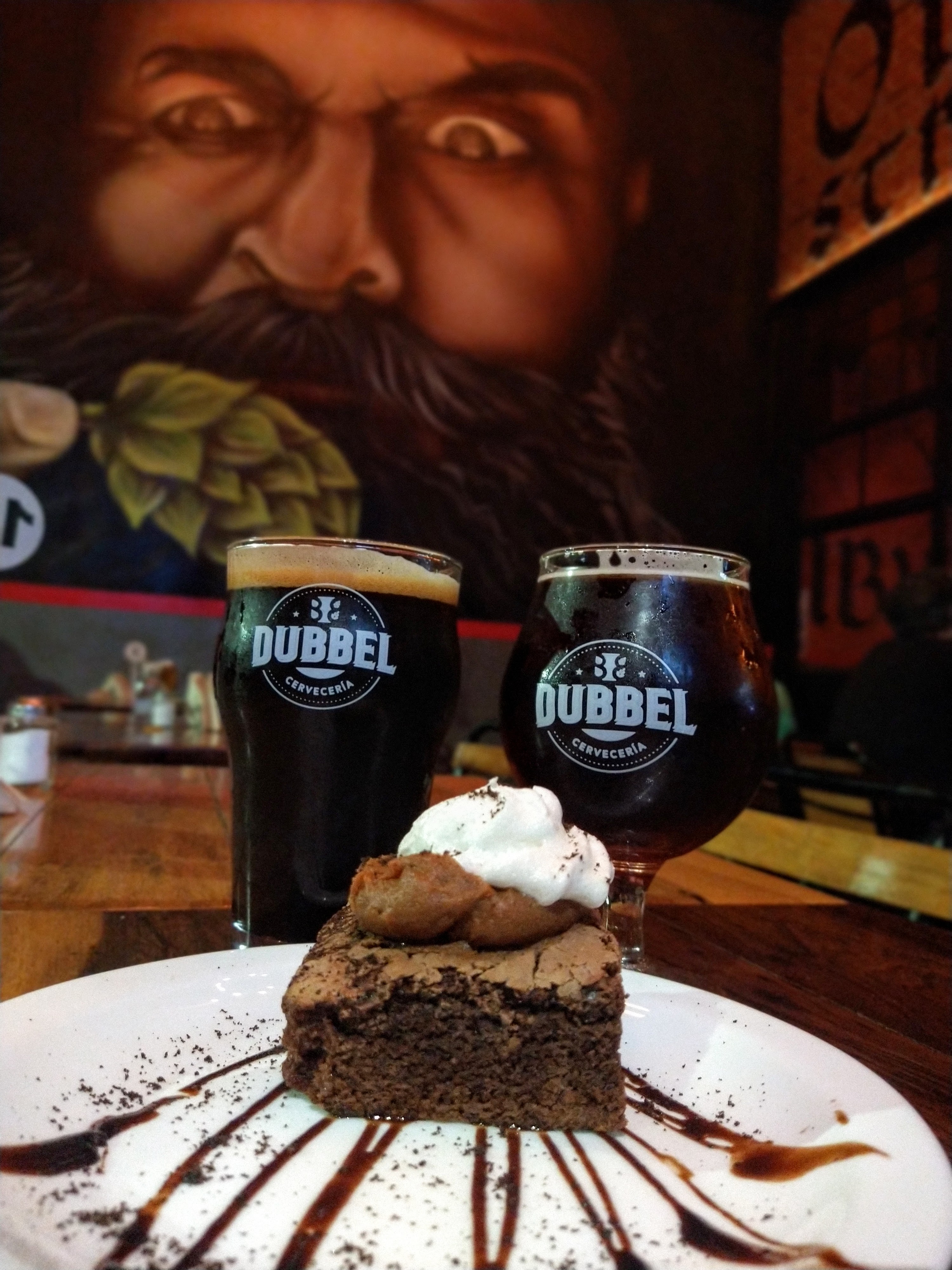 El postre por supuesto fueron una Dude Oatmeal Stout de Lumpen y una Dubbel de Deleuze, que maridamos con un hermoso Brownie con DDL y merengue. Pero como si todo lo que probamos no hubiera sido suficiente, la noche la cerramos con una fresquísima y «digestiva» Mandragora Sour con mango, maracuyá, lima y salsa picante dragón de Astor.