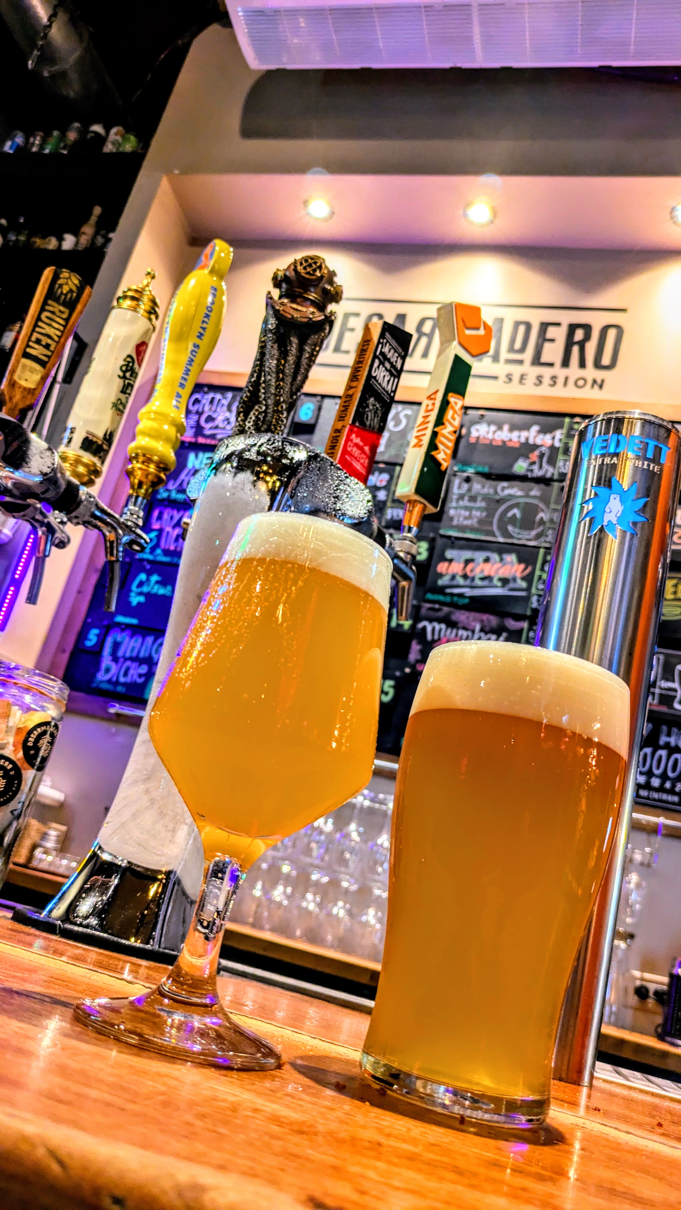 Para empezar la noche, optamos por unas birras: Citra a ciegas NEIPA de Strange Brewing y Plaza de mulas APA de Federal, mientras charlábamos y disfrutábamos de sentarnos en la barra.