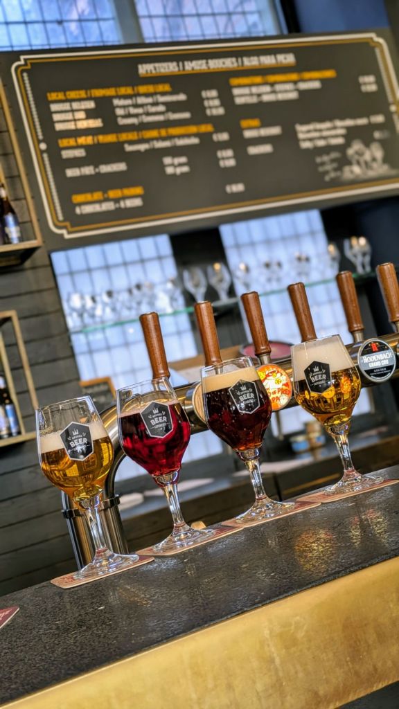 Pero el recorrido no termina ahí. En el último piso te espera un bar con vista panorámica a la plaza, donde podés relajarte y probar una excelente selección de cerveza. La carta incluye clásicos de abadía, rarezas locales y algunas opciones por tiempo limitado.